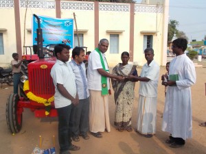 Consegna di un piccolo trattore a 10 agricoltori del villaggio Kilnatur